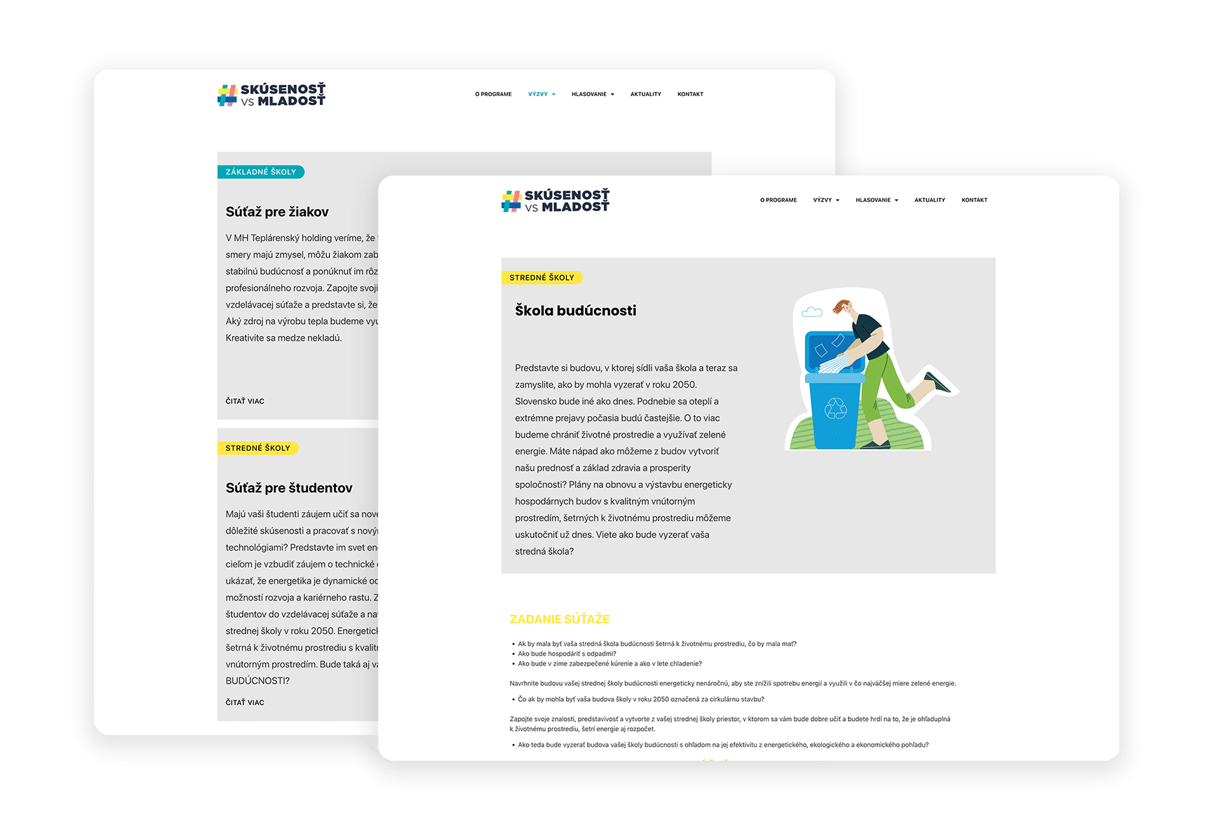 Zadaním bolo vytvoriť funkční a moderný web s rozšírenou funkcionalitou pre publikovanie verejných výziev pre základné a stredné školy. Dôležitou časťou bolo zachovať administráciu jednoduchú a prehľadnú aby si klient mohol zverejňovanie výziev spravovať sám a pripraviť funkcionalitu na prihlasovanie, hlasovanie a vyhodnocovanie súťaží/výziev.