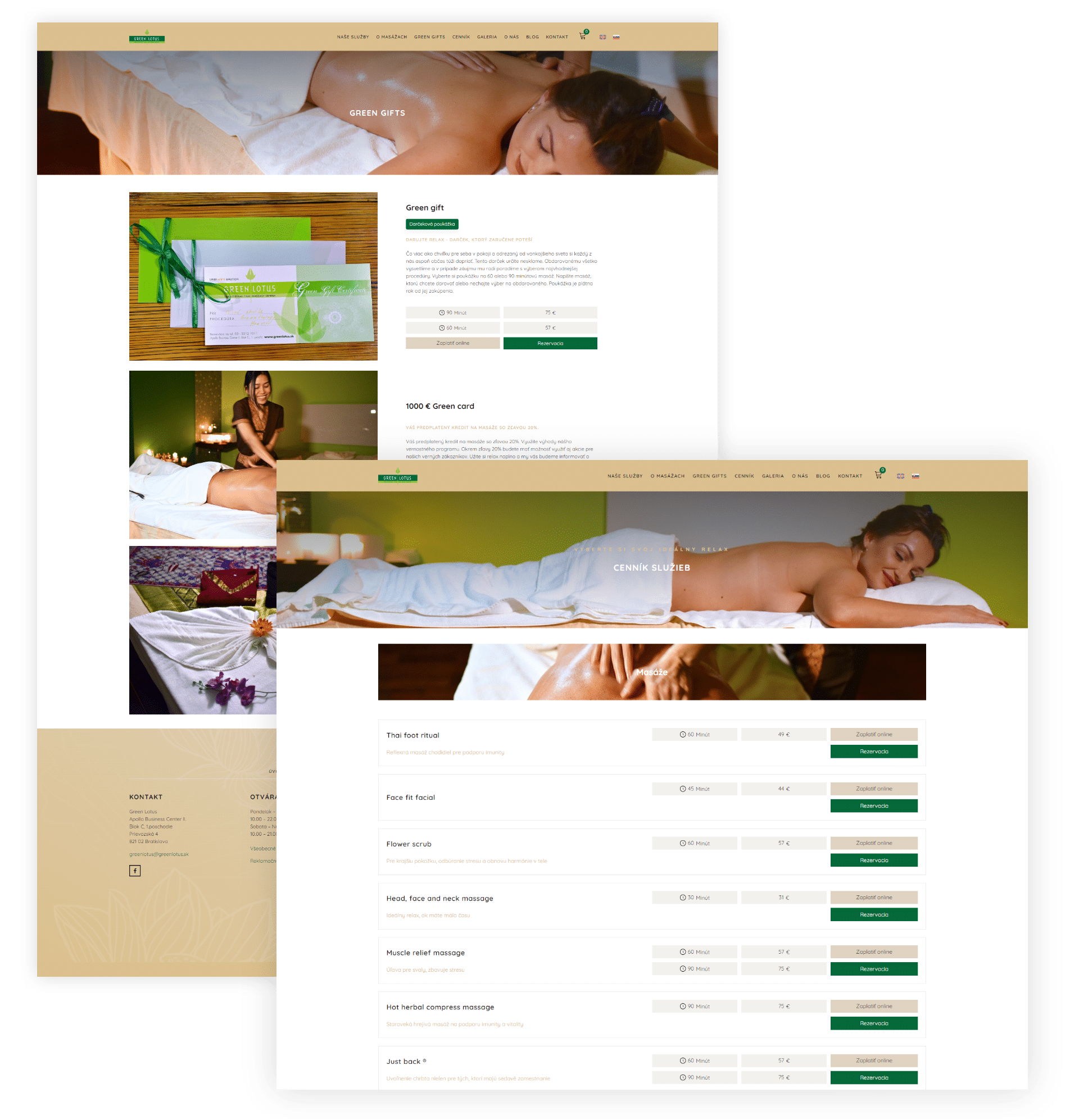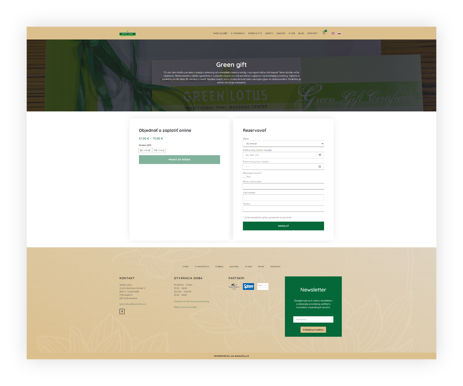 Cez woocommerce je možné rezervovať masáž a zaplatiť priamo na webe. Následne sa cez api prenešie rezervácia do GramCRM.