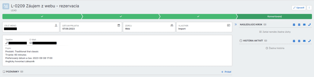 - Rezervácia cez formulár -> Leady – s označením „rezervácia“